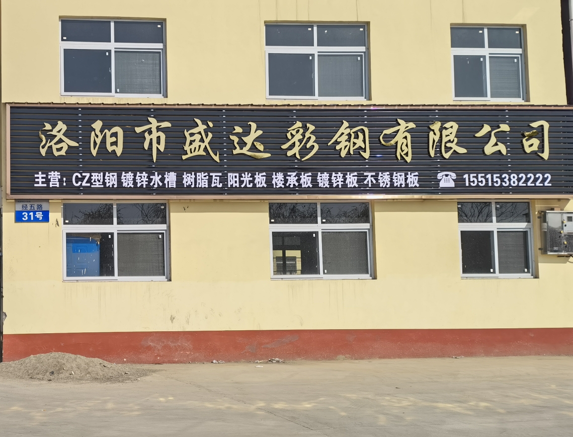 洛陽(yáng)市盛達(dá)彩鋼有限公司主要從事經(jīng)營(yíng): 12米剪版折彎鍍鋅水槽天鉤, 彩涂板、鍍鋅板、彩鋼復(fù)合板、覆膜彩鋼瓦、彩鋼瓦 C型鋼 鍍鋅新型鋼結(jié)構(gòu)的設(shè)計(jì)、加工、安裝 。產(chǎn)品主要用于大、中、小型廠房、樓房加層、超市、倉(cāng)庫(kù)、汽車展廳、活動(dòng)房、農(nóng)貿(mào)市場(chǎng)等工程。